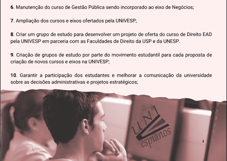 Trecho do Caderno de Resoluções advindo do primeiro Congresso de Estudantes da Univesp. Acesse o documento na íntegra aqui. Foto: Instagram/DCE Univesp
