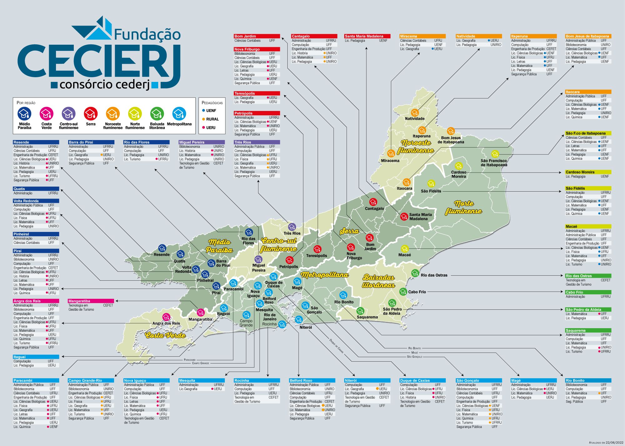 Mapa dos polos das universidades do Consórcio CEDERJ espalhados pelo Rio de Janeiro. Fonte: Site da Fundação Cecierj
